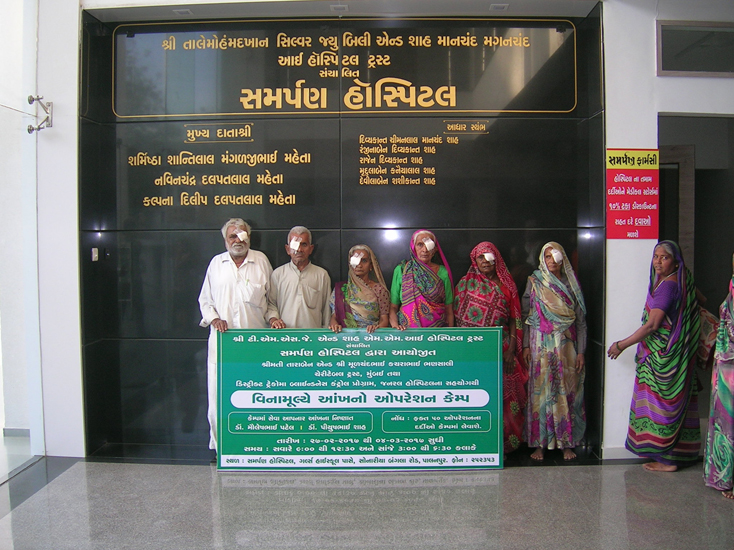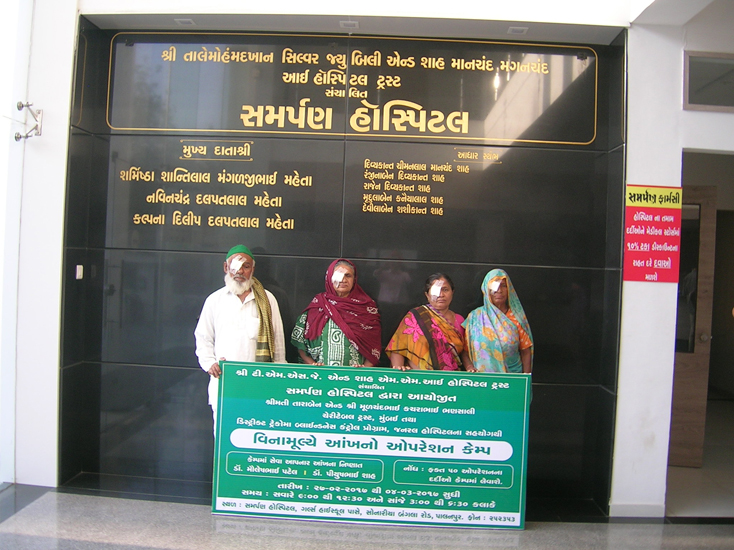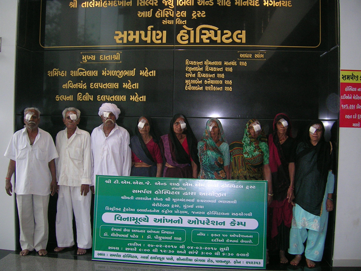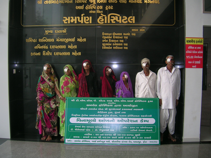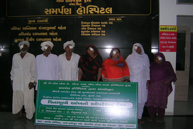શ્રીમતી તારાબેન એન્ડ શ્રી મૂળચંદભાઇ કચરાભાઇ ભણસાલી ચેરીટેબલ ટ્રસ્ટ,મુંબઇ દ્વારા “સમર્પણ હોસ્પિટલ” પાલનપુર માં તા.૨૭/૦૨/૨૦૧૭ થી તા.૦૪/૦૩/૨૦૧૭ દરમ્યાન વિનામૂલ્યે આંખ ના ઓપરેશન કેમ્પ નું આયોજન કરવામાં આવેલ જેમાં ૧૭૦૮ દર્દીઓની આંખોની તપાસ કરી અને ૭૦ દર્દીઓને મોતિયાના ઓપરેશન કરી આપવામાં આવેલ હતા.આ કેમ્પમાં આઇ સર્જન ડો.પિયૂષભાઇ શાહ તથા ડો.મૌલેષભાઇ પટેલ સુંદર સેવાઓ આપેલ.આ કેમ્પને સફળ બનાવવા સમર્પણ હોસ્પિટલ ના સ્ટાફ ના સભ્યોએ પણ સુંદર સહકાર આપેલ.